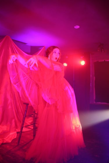 A legendary courtesan steps out of the frame to confront the myths men made of her, reclaiming her story through burlesque, striptease, and speculative imagination.