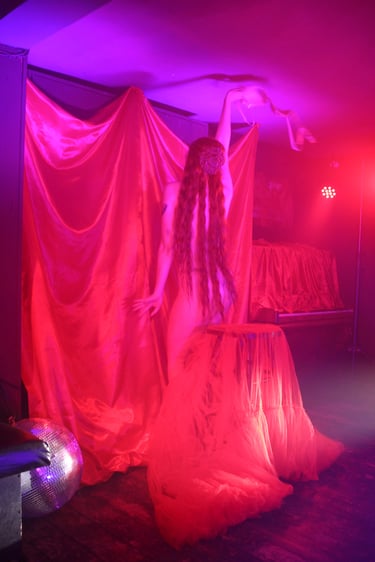 Through storytelling, burlesque dance, striptease, and audience interaction, Fantasizing Phryne reclaims the narrative of one of history’s most mythologized sex workers, weaving historical fragments with speculative futures.