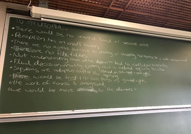 New-hope dramaturgy encourages us to engage in a process, not just with a process, so the day after yesterday brings the audience into a utopian space in order to engage with the utopian machine, to have conversations, to brainstorm, to use their imagination, and to day dream together.
