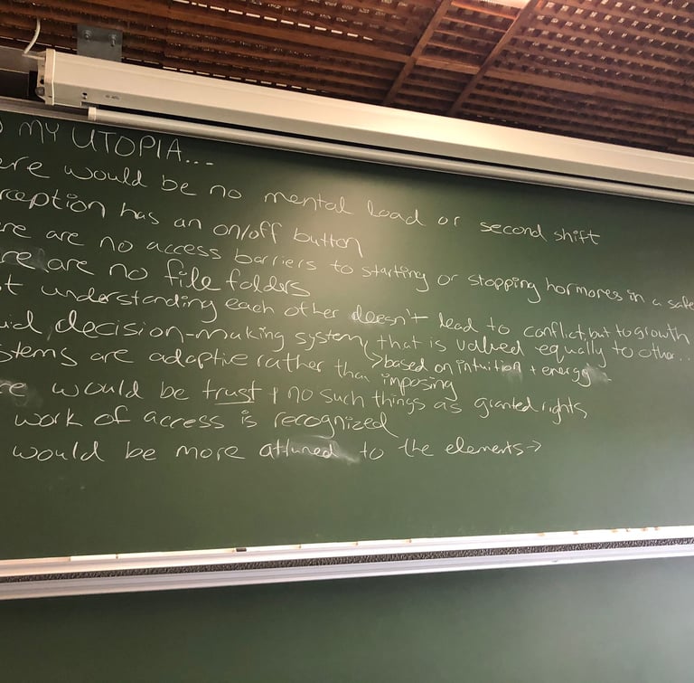 The second level we are working on is utopian speculation itself. By following a dramaturgy of new-hope, we bring people together in a process of opening up to the potentialities of what the future might be. Inspired by queer futurity and Black feminist futurity, we look to over-looked pasts, in the present, to try to create new futures. We practice pre-figurative living, by bringing utopian details into the present physically, metaphorically, and concretely. These two insights create a lens to see a future that is not just a projection of the present.
